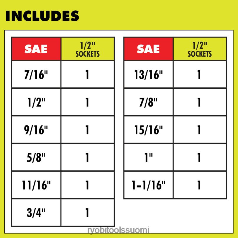 Täydennä ajoratkaisujasi ryobi 11 pc:llä. sae 1/2″ drive syvätörmäyshylsysarja. Tässä sarjassa on 6 pisteen muotoilu maksimaalista vääntömomenttia varten ilman pyöristäviä kiinnikkeitä. Suuret merkinnät mahdollistavat nopean ja helpon tunnistamisen, mikä säästää aikaa projektissa. Ohut seinämä, syvä kaivorakenne tarjoaa parempi pääsy ahtaisiin tiloihin. Pysy järjestyksessä linkkiseinäsäilytysyhteensopivan kotelon avulla. täydennä työkalukokoelmaasi ryobi-tarvikkeilla. 11 kpl sae 1/2″ drive syvän iskupistorasian sarjassa on ryobin rajoitettu elinikäinen takuu ja se sisältää (1) ) kotelo ja (11) 1/2″-kanta: 7/16″, 1/2″, 9/16″, 5/8″, 11/16″, 3/4″, 13/16″, 7/8 “, 15/16″, 1″, 1-1/16”