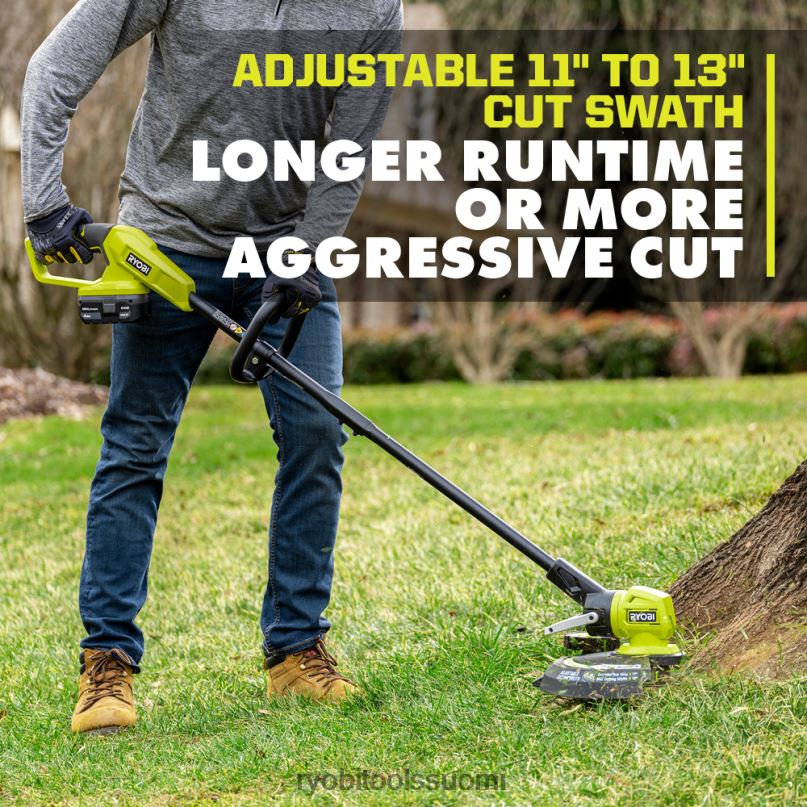 syötä ryobi 18v one+ -järjestelmään 18v one+ 13″ -teräleikkurisarjalla. Tehokkaan moottorin avulla voit torjua rikkaruohoja keskikokoisilla pihoilla pidennetyllä käyttöajalla. koe poikkeuksellinen suorituskyky vain liipaisimen painalluksella. pidempi käyttöaika tai aggressiivisempi leikkaus säädettävällä 11″ – 13″ leikkauskarholla. automaattinen syöttöpää lataa nauhan uudelleen ja siirtää linjaa jokaisella liipaisimen vedolla. äärimmäisen mukavuuden takaamiseksi, muuta narutrimmeri särmäjäksi, jotta voit leikata siistejä ja tarkkoja leikkauksia jalkakäytävilläsi ja ajoväylilläsi kääntyvän pään särmäystoiminnolla. Käytä säädettävän nopeuden liipaisinta saadaksesi enemmän hallintaa trimmaaessasi aitoja, postilaatikoita ja kukkapenkkejä pitkin. tätä 18v one+ 13” lankaleikkuria/reunussarjaa tukee ryobi 3-year mvalmistajan takuu ja sisältää p20018 18v one+ 13″ -teräleikkurin, pbp005 18v 4ah litiumakun, pcg002 18v laturin, ruohonohjaimen, etukahvan ja käyttöohjeet.
