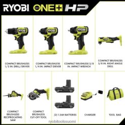 - sisältää: (1) 18v one+ hp harjaton 1/2″ pora/väännin, (1) 18v one+ hp harjaton 1/4″ iskuväännin, (2) 18v one+ 2ah korkean suorituskyvyn litiumparistot, laturi ja työkalulaukku