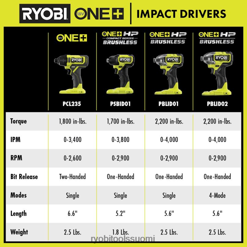 - yli 280 one+ tuotetta – kaikki toimivat minkä tahansa ryobi one+ 18 V akun kanssa
