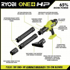 RYOBI 18v one+ hp kompakti harjaton 220 cfm puhallinsarja 22224303 ulkona