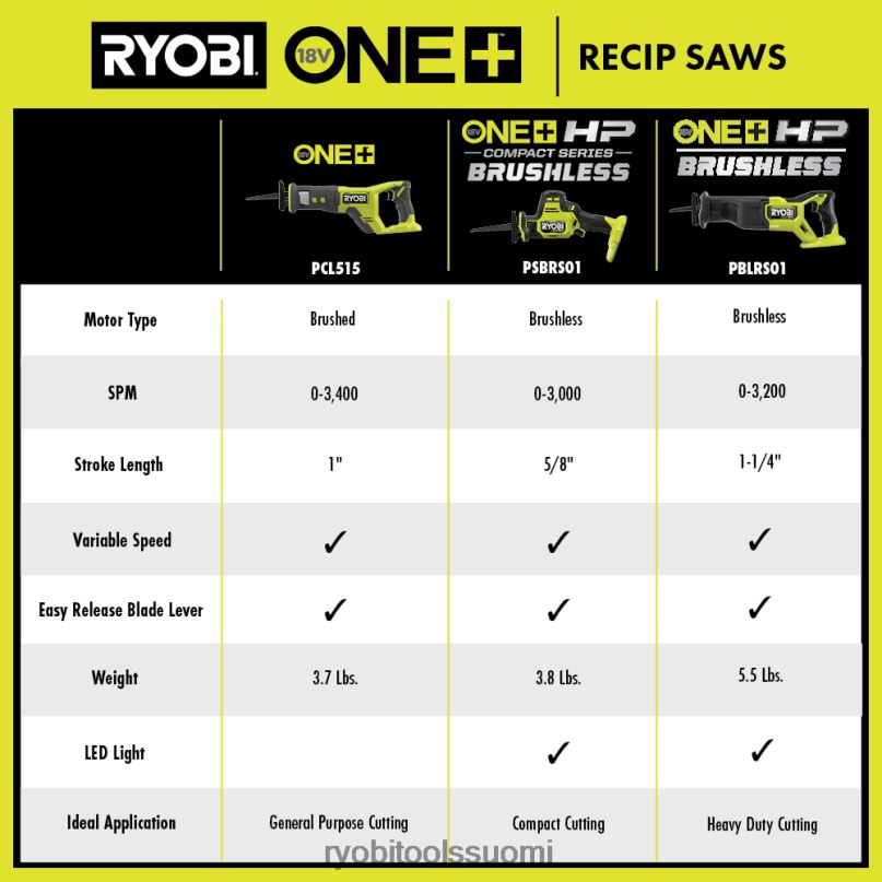 RYOBI 18v one+ mäntäsaha 2222495 sähkötyökalut
