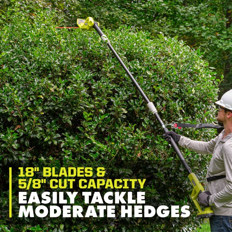 laajenna 18v one+ -järjestelmääsi 18v one+ 18 tuuman pensasleikkurisarjalla. Tehokas moottori tarjoaa 3 000 iskua minuutissa vaivattomaan trimmaukseen. Nauti jopa 33 minuutin käyttöajasta mukana tulevalla 18 V one+ 2ah akulla. koe maksimaalinen suorituskyky pelkällä liipaisimen painalluksella ilman kaasun tai johtojen vaivaa. nauti pidennetystä käyttöajasta mukana tulevalla 2ah akulla. 18 tuuman terien ja 5/8 tuuman leikkauskapasiteetin avulla voit helposti käsitellä kohtalaisia pensasaitoja. mukana tuleva jatkotanko auttaa ulottumaan jopa 9′:iin ja leikkaa helposti vaikeapääsyisiä pensaita ja pensaita. Lisäksi 4-asentoisen kääntyvän pään avulla voit säätää teriä leikkaamaan eri kulmista. kaksitoimisten terien avulla voit ajaa pensasaitoja läpi vähemmän tärinää ja vähemmän väsyneitä. mikä parasta, se on osa ryobi one+ -järjestelmä – mikä tahansa 18v one+ -akku toimii minkä tahansa 18v one+ -tuotteen kanssa. pensasleikkurilla ja akulla on 3 vuoden valmistajan takuu. Tämä sarja sisältää p26010 18v pensasleikkurin, pbp006 18v 2ah akun, pcg002 18v laturin, jatkotangon, kahvatangon, huoran, olkahihnan ja käyttöohjeet.