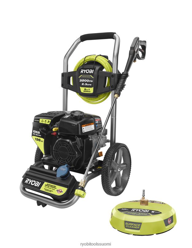 ryobi 3200 psi painepesuri 15 tuuman pintapuhdistimella on täydellinen yhdistelmä vaikeiden töiden nopeaan suorittamiseen. Tehokas kohler 196cc moottori tuottaa 3200 psi:n voiman puhdistaakseen lian, lian, öljyn ja muut tahrat. kestävä käsitrukin runko ja 12 tuuman pyörät tekevät kuljettamisesta helppoa. 35 jalkaa vaurioittamaton korkeapaineletku tarjoaa 40 % pidemmän ulottuvuuden vaikeapääsyisten alueiden puhdistamiseen. koneessa oleva pesuainesäiliö tarjoaa vaivattoman puhdistuksen, koska sinun ei tarvitse vetää ämpäriä ja letkua takanasi. käyttömukavuuden lisäämiseksi se on varustettu 5-in-1-pikavaihtosuuttimella, jonka avulla voit vaihtaa ruiskutuskuvioita nopeasti. kun puhdistat kovaa suKäytä 15 tuuman pinnanpuhdistusainetta pinnoille, kuten ajotiet, terassit ja jalkakäytävät. Tämä aikaa säästävä lisävaruste puhdistaa jopa 5 kertaa nopeammin kuin tavallinen suutin pyörivillä suihkuilla, jotka antavat sinulle suuren, juovattoman puhdistusreitin. ryobi 3200 psi kaasupainepesurilla on 3 vuoden rajoitettu työkalutakuu ja 3 vuoden moottoritakuu.