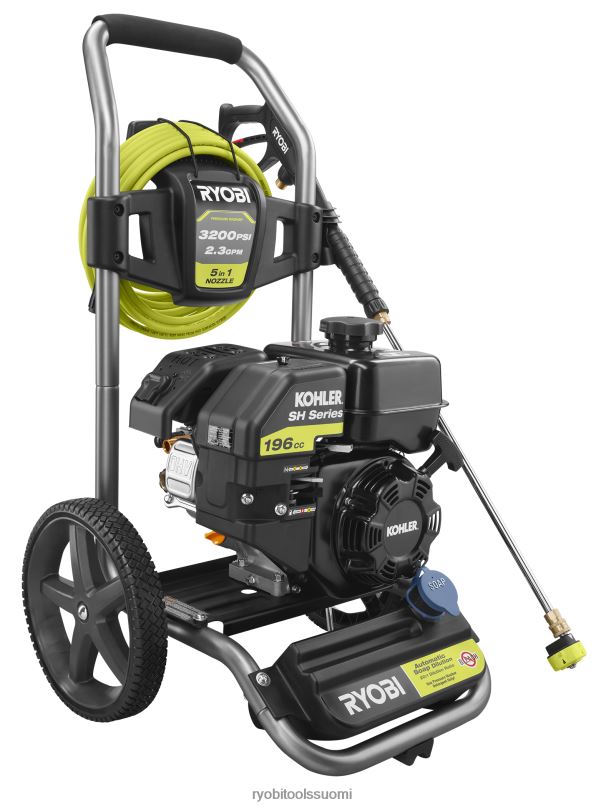 ryobi 3200 psi painepesuri on täydellinen vaikeiden töiden nopeaan suorittamiseen. Tehokas kohler 196 cc:n moottori tuottaa 3200 psi:n voiman puhdistaakseen lian, lian, öljyn ja muut tahrat. kestävä käsitrukin runko ja 12 tuuman pyörät tekevät kuljettamisesta helppoa. 35 jalkaa vaurioittamaton korkeapaineletku tarjoaa 40 % pidemmän ulottuvuuden vaikeapääsyisten alueiden puhdistamiseen. koneessa oleva pesuainesäiliö tarjoaa vaivattoman puhdistuksen, koska sinun ei tarvitse vetää ämpäriä ja letkua takanasi. käyttömukavuuden lisäämiseksi se on varustettu 5-in-1-pikavaihtosuuttimella, jonka avulla voit vaihtaa ruiskutuskuvioita nopeasti. ryobi3200 psi:n kaasupainepesurissa on 3 vuoden työkalu- ja moottoritakuu.