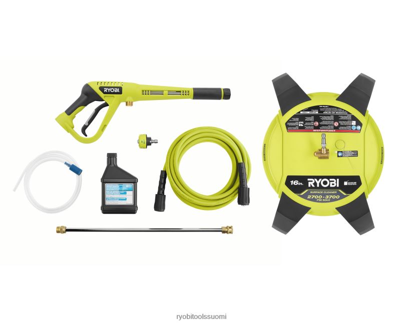 ryobin 3400 psi:n painepesuri 16 tuuman pinnanpuhdistusaineella on täydellinen yhdistelmä vaikeimpien töiden suorittamiseen nopeasti. Tehokas honda gc190 -moottori antaa 3400 psi:n voiman puhdistaakseen lian, lian, öljyn ja muut vaikeat tahrat. kestävä kottikärryjen runko ja 10 tuuman pyörät tekevät kuljettamisesta helppoa. Tässä painepesurissa on käännettävä kahva, joka tekee varastoinnista kätevän ja kompaktimman. 50 jalkaa vaurioittamaton korkeapaineletku tarjoaa pidemmän ulottuvuuden päästäkseen käsiksi myös vaikeille ja puhtaille alueille. käyttömukavuuden lisäämiseksi se on varustettu 5-in-1-pikavaihtosuuttimella, jonka avulla voit vaihtaa ruiskutuskuvioita nopeasti. Kun puhdistat kovia pintoja, kuten ajotietä, terassia ja jalkakäytäviä, käytä 16 tuuman pyörän pinnan puhdistusainetta. Tämä aikaa säästävä lisävaruste puhdistaa jopa 4 kertaa nopeammin kuin tavallinen suutin pyörivillä suihkuilla, jotka tarjoavat suuren, juovattoman puhdistusreitin. ryobi 3400 psi kaasupainepesurilla on 3 vuoden rajoitettu takuuy ja 2 vuoden moottoritakuu.