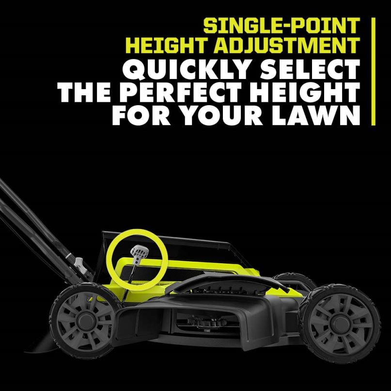 syötä 40v järjestelmään ryobin 40v ruohonleikkurilla. Tämä kompakti ja kevyt ruohonleikkuri tarjoaa jopa 30 minuutin käyttöajan mukana toimitetulla 40v 6ah akulla, mikä antaa sinulle kaasutehoa napin painalluksella ilman vaivaa tai huoltoa. Seitsemän eri korkeusasentoa, jotka vaihtelevat 1,5–4 tuumaa, voit valita nopeasti nurmikollesi täydellisen korkeuden yhden pisteen korkeussäädöllä. Lisäksi ryobi 40v -järjestelmä antaa sinun käyttää mitä tahansa 40 V akkua minkä tahansa 40 V tuotteen kanssa, mikä helpottaa työkalujen välillä vaihtamista. saat mielenrauhan 5 vuoden valmistajan työkalutakuulla ja 3 vuoden valmistajan akkutakuulla ja saat kaiken tarvitsemasi mukana toimitetulla ry401010 40v 18″ ruohonleikkurilla, op40605 40v 6ah litiumakulla, op404 40v laturilla, käynnistysavain, sivutyhjennyskouru ja käyttöohjeet.