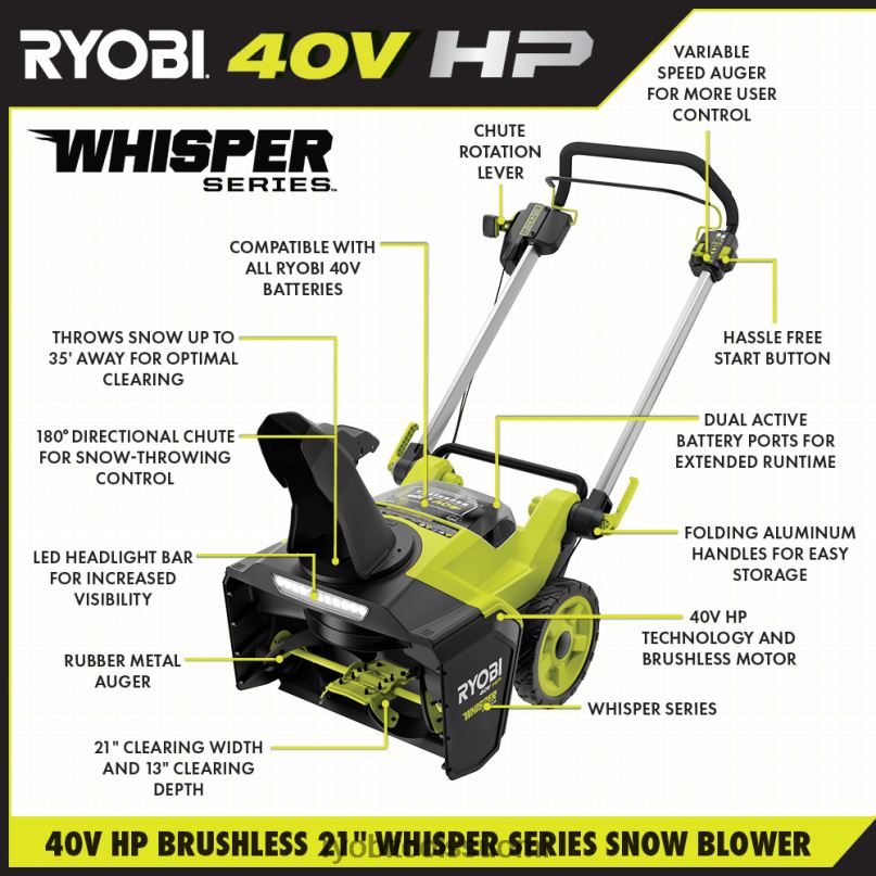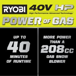 syöty ryobi 40v -järjestelmään ryobin 40v hp harjattoman 21″ lumilinkosarjan avulla. 40v hv -tekniikka tuottaa enemmän tehoa kuin 208 cc kaasulumilinko, mikä tekee tästä todellisen kaasunkorvikkeen, joka heittää lunta jopa 35 tuumaan. 40 V hv:n tekniikka yhdistää harjattomat moottorit, edistyneen elektroniikan ja korkean suorituskyvyn litiumteknologian, joka tuottaa kaasun tehoa ilman huoltoa ja vaivaa. Se voi puhdistaa jopa 19 autotilat, joissa (2) mukana 40v 7,5ah akut, jotka tarjoavat jopa 40 minuutin käyttöajan. Hiljaisimman tuotevalikoimamme whisper-sarjan osana tämä lumilinko on 84 % hiljaisempi kuin kaasu, joten se sopii täydellisesti käyttöön mihin aikaan vuorokaudesta muita häiritsemättä. 21 tuuman raivausleveyden ja 13 tuuman raivaussyvyyden ansiosta tämä lumilinko on ihanteellinen suurillejalkakäytävät ja ajotiet. siinä on myös säädettävänopeuksinen kumi-/metalliruuvi, joka mahdollistaa perusteellisen raivauksen ja hallitun lumen heiton 180 asteen suunnatulla kourulla. lataa jokainen mukana tuleva 40 V 7,5 ah akku alle 75 minuutissa mukana tulevalla 40 V pikalaturilla. mikä parasta, se on osa ryobin 40v järjestelmää, jossa mikä tahansa 40v akku toimii minkä tahansa 40v tuotteen kanssa. tällä 40 V hv:n harjattomalla 21″ lumilinkosarjalla on ryobin 5 vuoden valmistajan työkalutakuu, 3 vuoden valmistajan akkutakuu, ja se sisältää ry408010 40 V hv harjattoman 21″ lumilingon, (2) op40752 40v lithi um 7,5ah akut op406 40v pikalaturi, kouru ja suuntakokoonpano sekä käyttöohjeet.