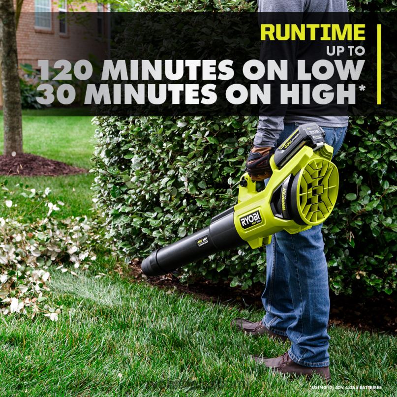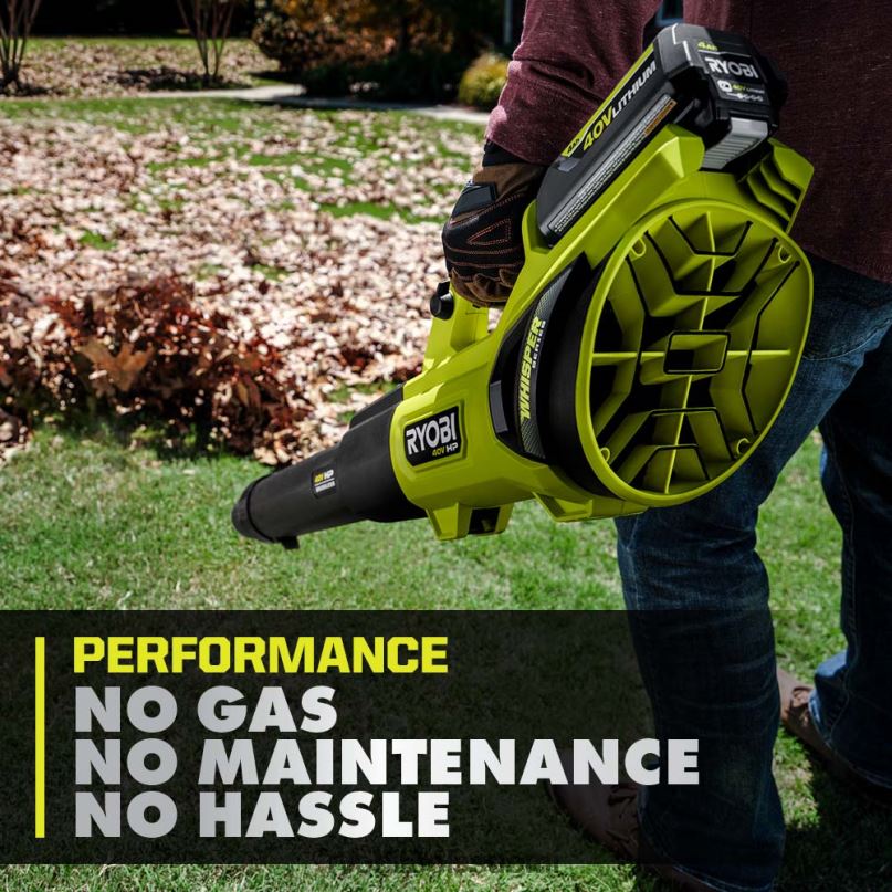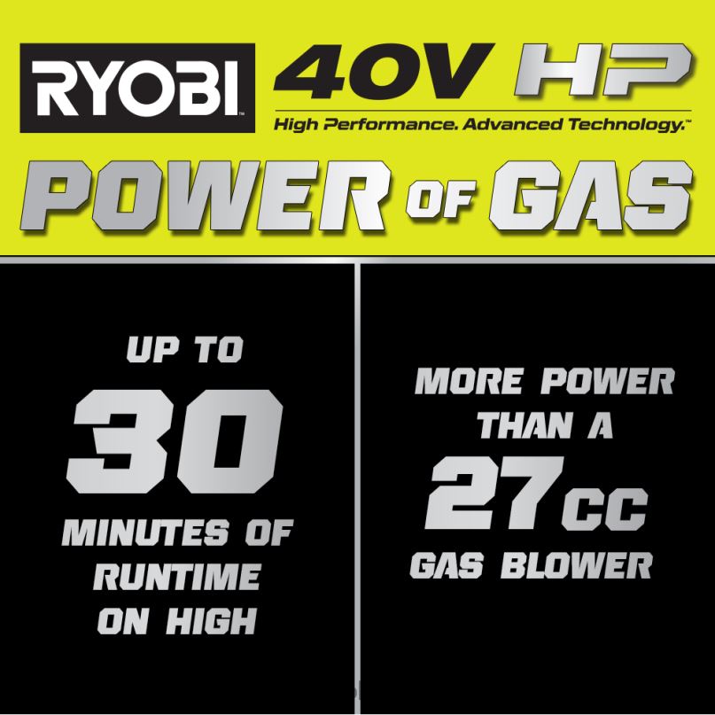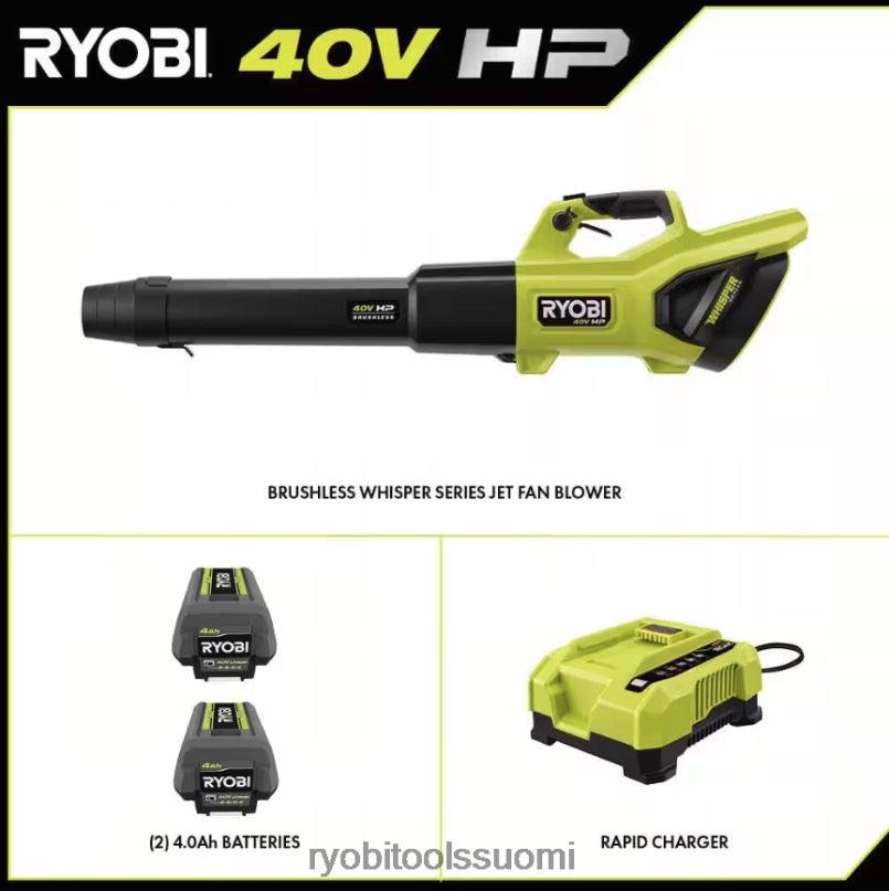 paranna 40 V järjestelmääsi 40 V hv:n johdottomalla suihkupuhaltimella. Tämä puhallin käyttää 40 V hv tekniikkaa ja suihkupuhallinrakennetta, joten se tuottaa enemmän tehoa kuin 27 cc:n kaasupuhallin. koe kaasun suorituskyky ilman kaasua, huoltoa tai vaivaa. tämä puhallin toimii jopa 30 minuuttia, kun se yhdistetään mukana toimitettujen (2) 40v 4ah akkujen kanssa. 40 V:n hv:n tekniikka yhdistää harjattoman moottorin, edistyneen elektroniikan ja litiumteknologian, joka tuottaa voimaa raskaan nurmikon roskien ja märkien lehtien läpi 730 cfm:n ja 190 mph:n nopeudella. Tämä whisper-sarjan puhallin on suunniteltu melua vaimentavalla vaahdolla ja yksilöllisesti sijoitetulla tuulettimella, ja se on suunniteltu olemaan 86 % hiljaisempi kuin kaasu- ja jopa muut akkupuhaltimet. säädettävän nopeuden liipaisimen ja turbopainikkeen avulla voit ohjata ilman ulostuloa, joten voit noinn soita takaisin, kun olet herkillä alueilla, kuten puhaltaessasi lehtiä multaamista, ja käytä turboa, kun poistat kovempia roskia. käyttämällä kahta mukana toimitettavaa mukautettavaa nopeussäädintä, voit maksimoida puhallusvoimasi lisäämällä ilmanopeutta. mikä parasta, tämä on osa ryobi 40v -järjestelmää, jossa mikä tahansa 40 V akku toimii minkä tahansa 40 V tuotteen kanssa. tällä 40 V hv:n puhallinsarjalla on ryobin 5 vuoden valmistajan takuu ja 3 vuoden valmistajan akkutakuu. Tämä sarja sisältää ry404010 40v suihkupuhaltimen, (2) op40404 40v 4ah litiumakkua, op406 40v pikalaturia, puhallinputken, (2) nopeussuuttimet ja käyttöoppaat.