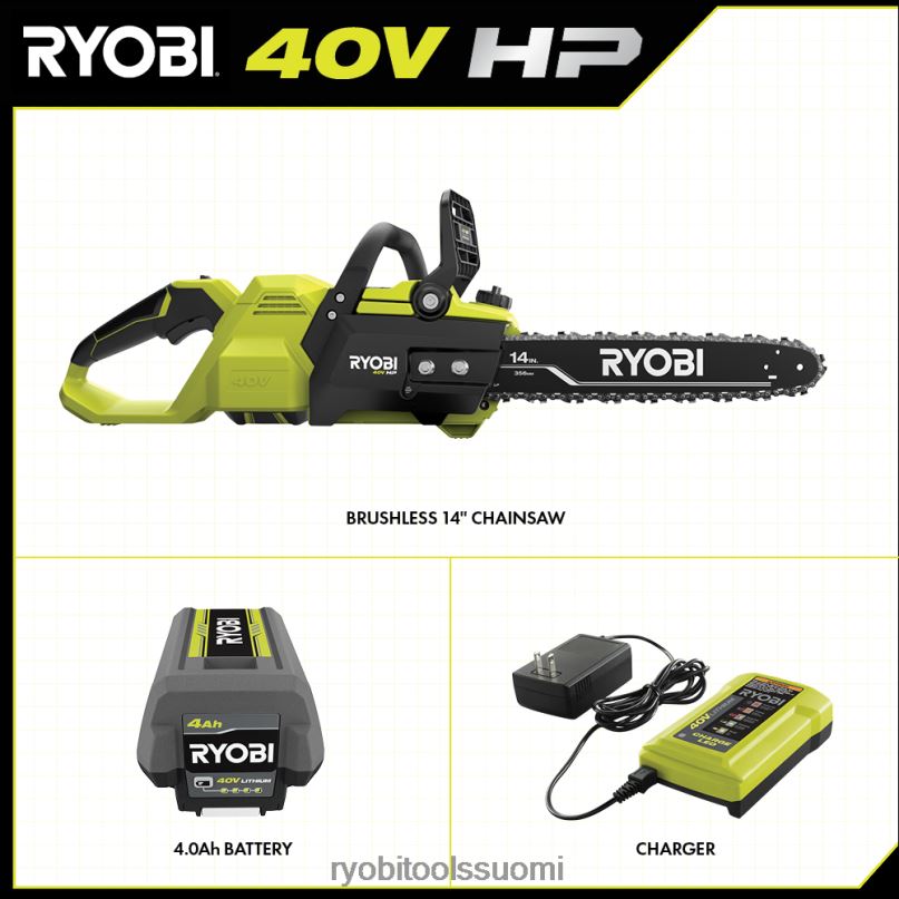 syöty ryobi 40v -järjestelmään 40 V hv:n harjattoman 14″ moottorisahasarjan avulla. 40 V hv:n tekniikka tuottaa enemmän tehoa kuin 37 cc:n kaasumoottorisaha, joten tämä on todellinen kaasunkorvaus. Tässä moottorisahassa on 14 tuuman terälevy ja ketju jopa 24 tuuman leikkauksiin sekä huippuluokan täyden ketjun ketju, joka tarjoaa pidemmän käyttöajan ja nopeamman leikkaamisen ja tuottaa jopa 128 leikkausta latauksella. 40 V hv -tekniikka yhdistää harjattoman moottori, edistynyt elektroniikka ja korkean suorituskyvyn litiumtekniikka lisäävät tehoa, käyttöaikaa ja kestävyyttä, mikä tekee tästä moottorisahasta täydellisen pihatyötarpeisiisi. Tässä moottorisahassa on säädettävä automaattinen voitelu, joka pitää ketjun voideltuna ketjun pidempään käyttöikään. Säädä ketjusi hallituksi , puhtaat leikkaukset käyttämällä työkalulla varustettua ketjun kiristystä on-b:llälautatyökalujen säilytys. mikä parasta, se on osa ryobin 40v järjestelmää, jossa mikä tahansa 40v akku toimii minkä tahansa 40v tuotteen kanssa. tällä 40 V hv:n harjattomalla 14 tuuman moottorisahasarjalla on ryobin 5 vuoden valmistajan työkalutakuu, 3 vuoden valmistajan akkutakuu, ja se sisältää ry405010 40 V hv harjattoman 14 tuuman moottorisahan, op40404 4ah litiumakun, op404 yhdistelmälaturin, 40v laturin jakoavain ja käyttöohjeet.