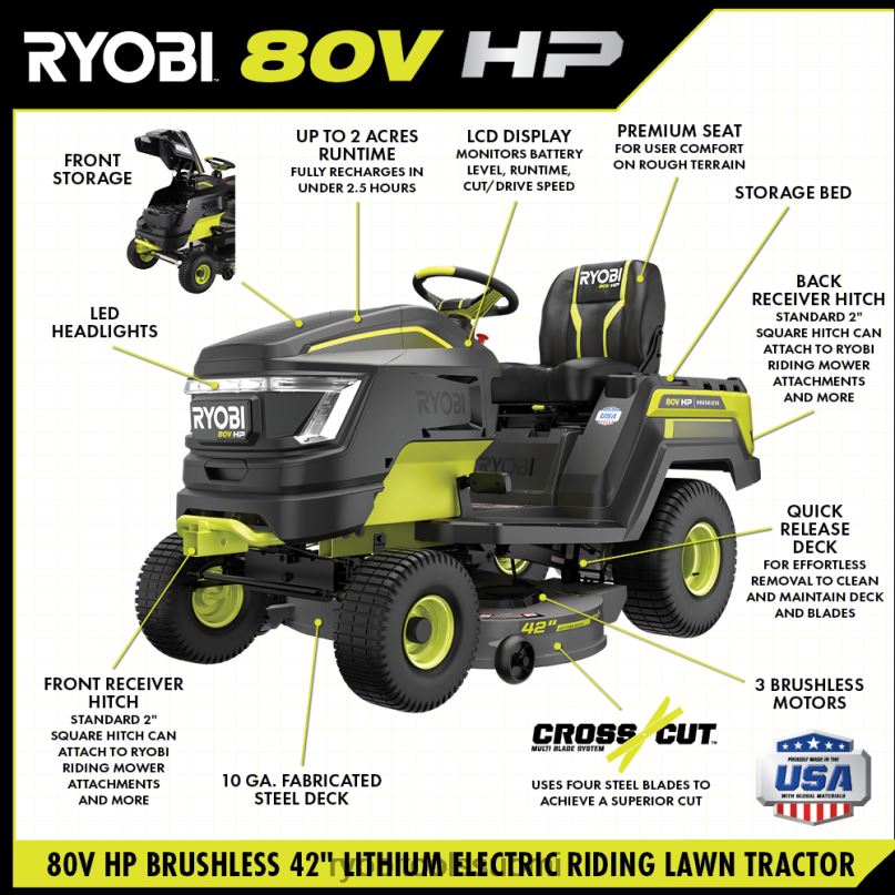 RYOBI 80v hv harjaton 42 akku akkukäyttöinen sähkökäyttöinen nurmikkotraktori 22224220 ulkona