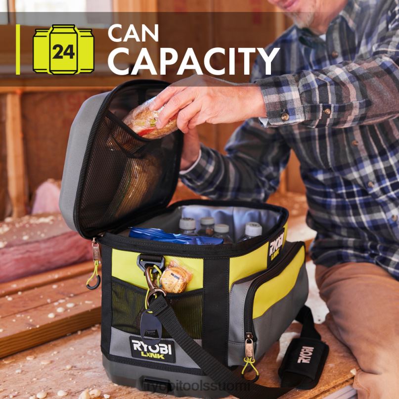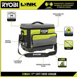 Modulaarinen ryobi link -säilytysjärjestelmä mullistaa varastoalan, jonka avulla voit organisoida, käyttää ja kuljettaa elämääsi. ryobi link 17″ pehmeäsivuinen jäähdytin on hienkestävä, 24 tunnin jäänpidätys ja 24 tölkin kapasiteetti. Tämän jäähdyttimen avulla olet valmis mihin tahansa työmaahan tai seikkailuun rannasta retkeilyyn. Eristetty kansitasku on täydellinen tila tavaroiden, kuten elintarvikkeiden, erottamiseen ja jäähdyttämiseen. 3 ulkotaskua säilyttää helposti lisätavaroita, kuten työkalujen säilytystilaa. Puhumattakaan, mukana toimitettu pullonavaaja on kiinnitetty, joten et koskaan jää tyhjin käsin. Kanna mukavasti yläkahva tai käytä mukana tulevaa pehmustettua olkahihnaa. Tämä jäähdytin voidaan helposti kiinnittää mobiilityökalulaatikkoosi kulkeaksesi mukanasi minne tahansa. Mikä parasta, se on osaryobi link modulaarinen säilytysjärjestelmäsarja, jossa on sama lukitustekniikka, joka yhdistää saumattomasti liikkuvan ja kiinteän säilytystarpeesi. omistaa tilasi modulaarisella ryobi link -tallennusjärjestelmällä.