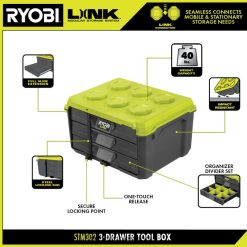 RYOBI linkki 3-laatikkoinen työkalulaatikko 22224643 varastointi