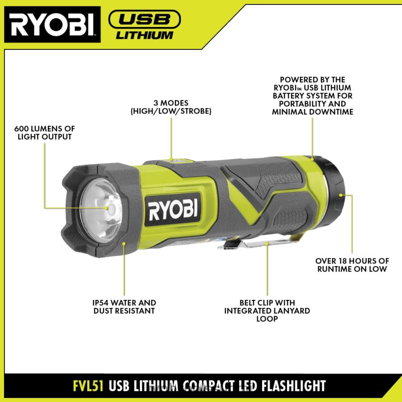 RYOBI usb litium kompakti led-taskulamppusarja 22224504 valaiseva elämäntapa ja virkistys