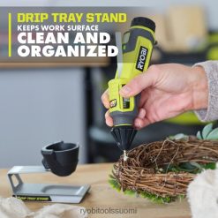 ryobi esittelee usb-litiumliimakynän. usb-litiumliimakynä lämpenee nopeasti alle 30 sekunnissa ja LED-merkkivalo ilmoittaa, että se on käyttövalmis. liukuva liimavipu tarjoaa maksimaalisen tarkkuuden ja hallinnan, jolloin voit määrittää, kuinka nopeasti liima voidaan levittää. metallinen tippakaukaloteline varmistaa, että työtilasi on puhdas ja järjestetty, kun projekti on valmis. Tässä tuotteessa on LED-merkkivalo, joka ilmoittaa, kun akku on ladattu (vihreä) tai akku on vähissä (punainen) käytön aikana. usb-litium-liimakynä on osa usb-litiumjärjestelmää, joka tarjoaa kompakteja, kannettavia, ladattavia ratkaisuja johdottomaan tehoon ja tuottavuuteen. tällä usb-litium-liimakynällä on ryobin 2 vuoden valmistajan takuu ja se sisältää, liimakynä, fvb01 usb-litiumparisto, 3 miniliimapuikkoa, tippakaukaloteline, usb-kaapeli ja käyttöohjeet