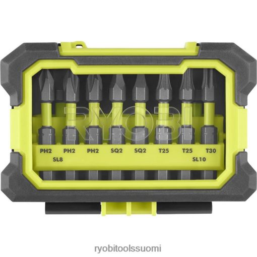 ryobi esittelee 10 kpl. Iskukäyttöteräsarja vyöklipsin säilytyskotelolla. tässä sarjassa on laaja valikoima iskunkestäviä teriä, joilla on 3x pidempi käyttöikä. Pyörivä vyöklipsikotelo tarjoaa ainutlaatuisen monipuolisen bittien säilytyksen. kotelo voidaan ripustaa naulalla tai tapilla työpenkkiisi tai kiinnittää vyöhön liikkeellä ollessasi, liikkuvia tehtäviä varten. läpinäkyvän kotelon avulla voit helposti tunnistaa bittisi tehokkuuden varmistamiseksi projektin kaikissa vaiheissa. 2 tuuman teräissä on vääntövyöhyke, joka on suunniteltu vaimentamaan iskuvoiman käytön aiheuttamaa suurta vääntömomenttia ja tarvetta. Terien vihreä nauha helpottaa sen löytämistä työpenkistä, työkalulaatikosta ja työmaalta. tähän sarjaan kuuluu (3) 2″ ph2, (2) sq2 bitti, (2) torx #25, (1) torx #30, (1) sl8 ja (1) sl10.