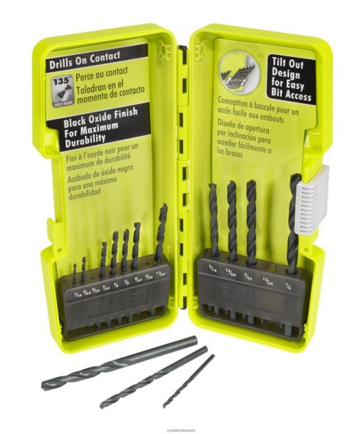 ryobin 14-osainen mustaoksidiporanteräsarja sisältää 1/16 tuuman ja 1/4 tuuman terät. Nämä terät on valmistettu pikateräksestä ja musta oksidiviimeistely korkean kestävyyden ja korroosionestoa varten. kotelossa olevat teränpitimet kallistuvat ulos helpon pääsyn vuoksi. tunnista tämä sarja nopeasti kotelon kyljessä olevan helppolukuisen kuvauksen avulla. säästä aikaa ja turhautumista kaikkien irtonaisten osien kaivamisesta, kun kiinnität kotelon ryobi dockit -varastoalustalle (myydään erikseen).