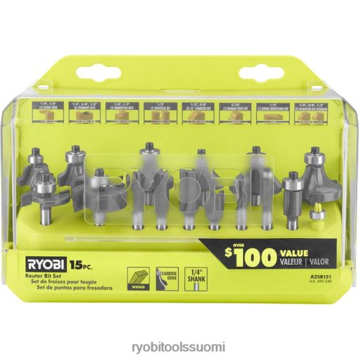 ryobin 15 kpl reititinteräsarja tarjoaa suosituimman valikoiman reititinteriä kaikkiin projekteihisi. näissä reitittimen teräissä on 1/4 tuuman varret kompaktissa suojakotelossa. terät ovat ihanteellisia koristeelliseen reunukseen, liittämiseen ja leikkaamiseen.