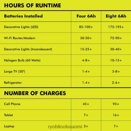 laajenna ryobi 18v one+ -järjestelmääsi ryobi 18v one+ 1800 watin voimalaitoksella. olitpa työmaalla, erämaassa tai kotona sähkökatkon aikana, tämä voimalaitos on täydellinen laitteiden pitämiseen käynnissä. 18 V one+ -akkuja käyttämällä tämä laite tuottaa 3 000 käynnistyswattia ja 1 800 käyntiwattia laitteille, kuten matkapuhelimille, kannettaville tietokoneille, valoille ja jopa televisioille ja jääkaapeille. Käyttämällä (8) 12ah 18v litiumparistoa tämä laite voi antaa virtaa täysikokoiselle jääkaapin jopa 28 tunniksi tai 55 tuuman led-televisiolle yli 14 tunniksi. Hiljaisen toiminnan ja nollapäästöjen ansiosta tämä voimalaitos on turvallinen ulko- ja sisäkäyttöön. puhdas siniaaltotekniikka mahdollistaa puhtaan tehon ja varmistaa yhteensopivuuden herkän elektroniikan kanssa. kuuma swap-ominaisuuksien avulla voit vaihtaa akkuja ilman, että virta katkeaa. Tässä voimalaitoksessa on myös 60 watin usb-c-latausportti, jonka avulla voit ladata 8 akkua peräkkäin seinälaturin, autosovittimen tai jopa aurinkopaneelin kautta. valvoa ja ohjata voimalaitoksesi etänä käyttämällä ryobi gencontrol -sovellusta, joka näyttää tehon, akun tason ja paljon muuta. mikä parasta, se on osa ryobi one+ -järjestelmää, jossa mikä tahansa 18v one+ -akku toimii minkä tahansa 18v one+ -tuotteen kanssa. tällä 18v one+ 1800 watin voimalaitoksella on ryobin 3 vuoden valmistajan takuu, ja se sisältää ryi818bt 18v one+ voimalaitoksen, suojakannen, laturin sovittimen, usb-c-kaapelin ja käyttöoppaan. akku ja laturi myydään erikseen.