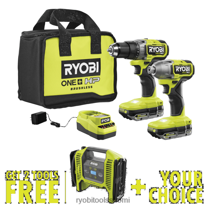 ryobi 18v one+ hp harjaton 2-työkalun yhdistelmäsarja sisältää 1/2″ pora/väännin, 1/4″ iskuväännin, (2) 18v one+ 2ah litium high suorituskykyiset akut, laturi ja työkalulaukku, jossa on ilmainen 18v one+ kaksitoiminen täyttö/deflaattori ja vapaavalintainen työkalu. 1/2″-porakoneessa on harjaton moottori, joka mahdollistaa jopa 20 % nopeamman porauksen ja jopa 50 % enemmän vääntömomentin aikaa ja energiaa sovelluskohtaisesti. Sen 750 in-lbs vääntömomentti maksimoi lähtötehon porattaessa kovien materiaalien läpi … harjaton moottori tuottaa jopa 2,200 in-lbs. vääntömomenttia, mikä antaa tälle työkalulle voimaa ajaa pidempiä kiinnikkeitä kovien materiaalien läpi. mikä parasta, se on osa ryobi one+ -järjestelmää, jotka kaikki toimivat samalla akkualustalla. tällä 18v one+ hp harjattomalla 2-työkalun yhdistelmäsarjalla on ryobin 3 vuoden valmistajan takuu ja se sisältää pbldd01 18v one+ hp harjattoman 1/2″ poran/väännin, pblid01 18v one+ hp harjattoman 1/4″ iskuohjaimen, (2) pbp003 18v one+ 2ah korkean suorituskyvyn litiumparistot, laturi, laukku ja käyttöohjeet, joissa on ilmainen p747 18v one+ kaksitoiminen täyttö/deflaattori ja vapaavalintainen työkalu.