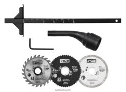 - sisältää: (3) 3-3/8 tuuman terät, reunaohjaimen, pölyportin ja kuusioavaimen