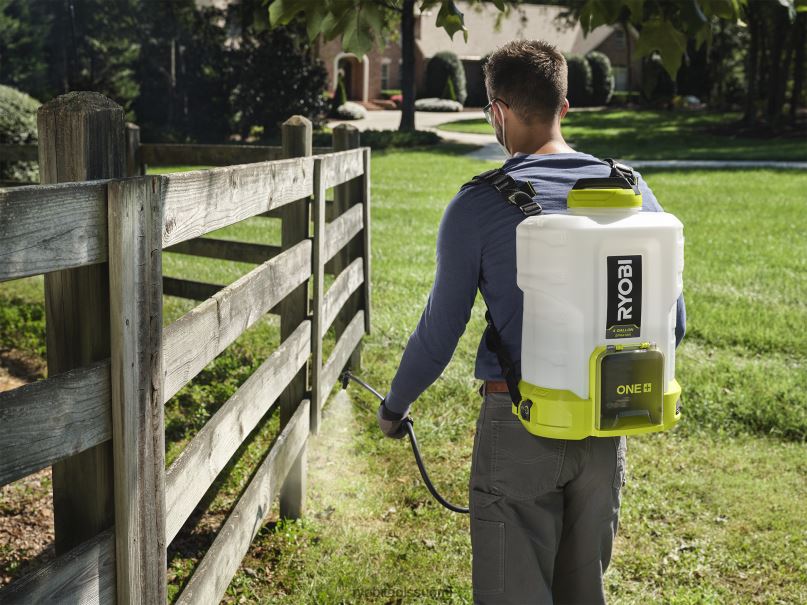 RYOBI 18v one+ 4 gallonan reppu kemikaalisuihkusarja 22224441 ulkona