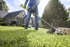 RYOBI 18v one+ harjattomalla kiinnikkeellä varustettu nauhatrimmerisarja 22224296 ulkona