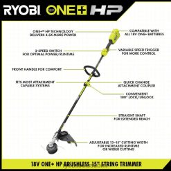 ryobi 18v one+ hp harjaton 15″ kiinnitysnauhatrimmeri on paras yhdistelmä tehoa ja monipuolisuutta . siinä on harjaton moottori maksimaalisen tehon ja kestävyyden saavuttamiseksi. Expan-it-kiinnitystoiminnon avulla voit muuttaa trimmeristäsi särmäyksen, puhaltimen, pylvässahan ja monien muiden työkalujen käytettävissä olevien lisälaitteiden avulla, mikä tarkoittaa, että voit säästää aikaa, tilaa ja rahaa. Tämä trimmeri on varustettu kelan easy+ syöttöpäällä, jossa on nopeuskelauskammi, joka voidaan ladata uudelleen 60 sekunnissa tai vähemmän. Säädettävän nopeuden liipaisin ja 2-nopeuksinen kytkin tarjoavat paremman hallinnan mihin tahansa käyttöön. säädettävä 13″ – 15 ” Leikkuuleveyden avulla voit optimoida trimmerisi suuremmaksikäyttöaika tai leveämpi leikkuuleveys. Tässä kevyessä ja tasapainoisessa mallissa on myös etukahva mukavuuden takaamiseksi ja trimmerissä on 6,0 ah:n akku pidentää käyttöaikaa. akku on yhteensopiva ryobi one+ -järjestelmän kanssa. takaa 3 vuoden takuu.