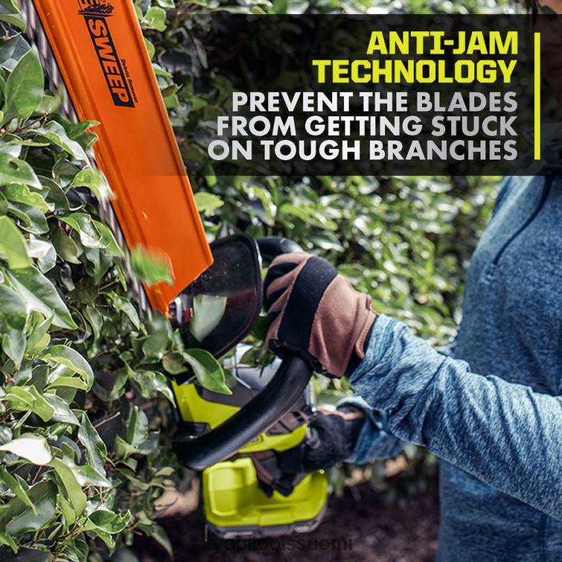 - selvitä syviä pensasaitoja 22 tuuman terien ja 3/ 4″ leikkauskapasiteetti
