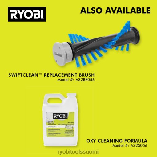 laajenna ryobi 18v one+ -järjestelmääsi 18v one+ swiftclean spot -puhdistusainesarjalla. swiftclean on valmis elämän jokapäiväisiin roiskeisiin ja sotkuihin. nosta langaton swiftclean ja jätä käsiharjat autotalliin sekä selkäkipu, joka liittyy perinteisiin manuaalisiin puhdistusmenetelmiin. Tämä paikanpuhdistusaine on ihanteellinen tuoreisiin roiskeiden siivoukseen. moottorikäyttöinen hankausharja ravistaa ja nostaa roskat verhoilun, auton istuimien, portaiden, mattojen ja muiden puhdistukseen vaivattomasti. johdoton siirrettävyys ja kevyt muotoilu sopivat täydellisesti välittömien sotkujen puhdistamiseen ja estämään tahrojen muodostumista. ryobi swiftcleanin mukavuus on se, että se pystyy tekemään kaiken langattomalla teholla; ruiskuta liuos tarkasti, sekoita sähkökäyttöisellä harjalla ja nosta sitten tahra pow:llasurkea imu. mukana toimitettu 6 unssin ryobi oxy -puhdistusliuos on käyttövalmis koostumus, mikä tarkoittaa, että laimentamista, sekoittumista ja vaivaa ei tarvita. Kaikki swiftcleanin selkeät osat ovat tiskikonepesun kestäviä, mikä helpottaa työkalujen huoltoa ja puhdistusta. tällä 18 V Swiftclean spot -puhdistusainesarjalla on ryobin 3 vuoden valmistajan takuu, ja se sisältää 18 V:n 2ah litiumakun, laturin ja 6 unssin pullon ryobin oksipuhdistusliuosta. lisää oksiratkaisuja löytyy osoitteesta homdepot.com etsimällä mallinumeroa a32s056.