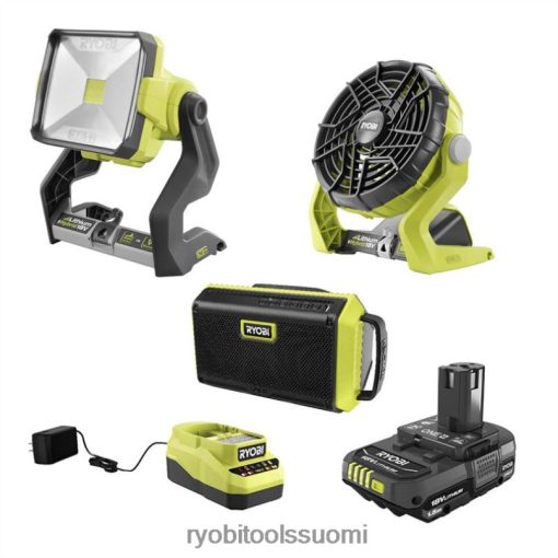ryobi esittelee 18v one+ langattomien 3-työkalujen asuntoautojen yhdistelmäsarjan, jossa on työvalo, kaiutin, tuuletin, 1,5 ah:n akku ja laturi. one+-työvalo tuottaa yli 2400 lumenia suurien työtilojen valaisemiseen ja toimii viileämmin kuin halogeeni- tai hehkulamput. tämä ryobi 18v one+ -kaiutin langattomalla Bluetooth-tekniikalla on pelin muuttava lisä one+-kokoelmaasi. uusi älykäs vahvistinteknologiamme tuottaa tehokkaan, terävän äänen millä tahansa äänenvoimakkuudella, 8,5 kertaa selkeämmällä tavalla kuin p746. Hybridituulettimen avulla virta ei lopu koskaan, kun on kätevä vaihtoehto käyttää yksi+ akkua tuulettimen pyörittämiseen tai vaihtaa sähkövirtaan jatkojohdolla pidempään käyttöön. Tämä kompakti muotoilu mahdollistaa helpon siirrettävyyden, ihanteellinen sekä sisä- että ulkokäyttöön. mukana toimitettu akku ja laturi ovat yhteensopiviale kaikilla ryobin 18v työkaluilla. ryobin 3 vuoden valmistajan takuun tukema 3-työkalusarja sisältää työvalon, bluetooth-kaiuttimen, hybridituulettimen, 1,5 ah:n akun, laturin ja käyttöoppaan.