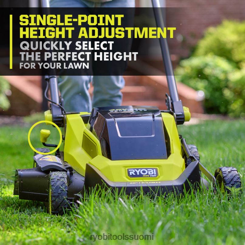 syötä 40 V järjestelmään ryobin 40 V hv:n harjattomalla 20″ työntöruohonleikkurilla. 40 V hv:n tekniikalla tämä leikkuri tuottaa enemmän tehoa kuin 150 cc:n kaasuleikkuri, mukana toimitettu 40 V 6 ah litiumakku tarjoaa jopa 48 minuutin käyttöajan, mikä tekee siitä ihanteellisen jopa 1/2 hehtaarin alueelle. 40 V hv:n tekniikka yhdistää harjattoman moottorin, edistyneen elektroniikan ja litiumakut, jotka reagoivat automaattisesti leikkuuolosuhteisiin ja lisäävät terää nopeus, joka eliminoi tukkeutumisen ja teho kovimman leikkauksen kautta. Yhden pisteen korkeudensäätö mahdollistaa nopean nurmikollesi täydellisen korkeuden valinnan, kun taas yhdellä kosketuksella taitettavat kahvat helpottavat säilytystä ahtaissakin paikoissa. koe kaasuteho vain napin painalluksella. mikä parasta, se on osa ryobi 40v -järjestelmää wtässä mikä tahansa 40 V akku toimii minkä tahansa 40 V tuotteen kanssa. tällä ruohonleikkurilla on ryobin 5 vuoden valmistajan työkalutakuu, 3 vuoden valmistajan akkutakuu, ja se sisältää ry401017 40v hv harjattoman 20″ työntöleikkurin, op40605 40v 6ah litiumakun, op408 40v pikalaturi, ruohoavaimen laukku , multaamistulppa, sivupoistokouru ja käyttöohjeet.