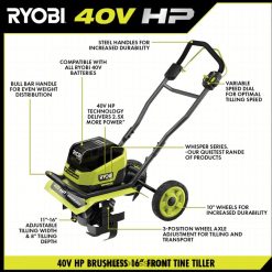 syöty ryobi 40v -järjestelmään ryobin 40v hp harjattomalla 16″ etupiikkiohjaussarjalla. 40 V hv -tekniikka tuottaa enemmän tehoa kuin 208 cc:n kaasu jyrsin, mikä tekee tästä ohjausaisasta todellisen kaasun korvikkeen. 40 V:n hv:n tekniikka yhdistää harjattoman moottorin, edistyneen elektroniikan ja korkean suorituskyvyn litiumteknologian, joka tarjoaa voimaa murtautua uudelle tasolle ja selviytyä vaikeassa maastossa. Jopa 1 500 neliöjalkaa latauksella, vastaa tenniskentän muokkausta, joten tämä etujyrsin on ihanteellinen puutarhaan ja kukkapenkkiin. Siinä on 11″ – 16″ säädettävä muokkausleveys ja 8″ muokkaussyvyys. Tämä jyrsin on osana whisper-sarjaa. olla 94 % hiljaisempi kuin kaasu, joten voit työskennellä milloin tahansa vuorokauden häiritsemättä muita. syvempään muokkaukseen ja mukavuuteennt kuljetuksessa, käytä 3-asentoista pyörän akselia ja liikuta helposti kestävien teräskahvojen ja 10″ pyörien avulla. Tässä jyrstimessä on myös härkätanko tasaisen painon jakautumiseen muokkauksen aikana. lataa 40 V 6ah litium-akkusi alle 90 minuutissa mukana tulevalla 40 V pikalaturilla. mikä parasta, se on osa ryobin 40v järjestelmää, jossa mikä tahansa 40v akku toimii minkä tahansa 40v tuotteen kanssa. tällä ryobin 40v hv harjattomalla 16″ etupiikkiohjaussarjalla on ryobin 5 vuoden valmistajan työkalutakuu, 3 vuoden valmistajan akkutakuu ja se sisältää ry40703 40v hv harjattoman 16″ etupiikin ohjausaisan, op40605 40v 40v, op40605 40v, op40605 40v 40v laturi, raskaat teräspiikit, pyörät, asennustarvikkeet ja käyttöohjeet.