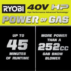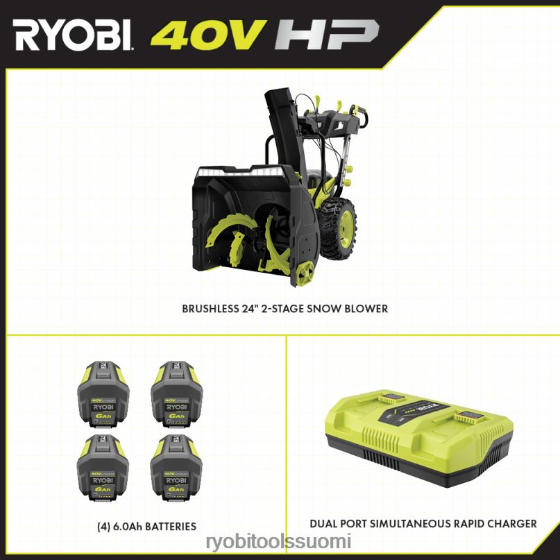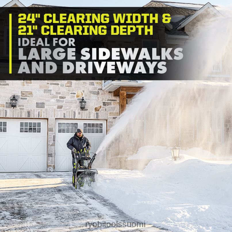 liity ryobi 40v -järjestelmään ryobin 40v hp harjattomalla 24″ lumilinkosarjalla. 40v hv tekniikka tuottaa enemmän tehoa kuin 252cc kaasulumilinko, joka tekee tästä todellisen kaasunkorvikkeen, joka heittää lunta jopa 55 tuumaan. 40 V hv:n tekniikka yhdistää harjattomat moottorit, edistyneen elektroniikan ja korkean suorituskyvyn litiumteknologian, joka tuottaa kaasun tehon ilman vaivaa. Tämä lumilinko saa jopa 45 minuuttia käyttöaika jopa 31 autopaikan tyhjentämiseen käyttämällä (4) aktiivista akkuporttia ja (4) 40v 6ah akkuja. osana whisper-sarjaa se on suunniteltu olemaan 35 % hiljaisempi kuin kaasu- ja jopa muut johdottomat lumilingot, joten voit työskennellä mihin vuorokaudenaikaan tahansa. 24 tuuman raivausleveys ja 21 tuuman raivaussyvyys tekevät siitä ihanteellisen suurille jalkakäytäville ja ajotiteille. Siinä on varnopea itseliikkuva käyttöjärjestelmä, joka viimeistelee työn nopeasti ja vaivattomasti. Parantaa hallintaa ja kestävyyttä säädettävänopeuksinen teräsruuvi selviytyy raskaasta raivauksesta, ja siinä on 180 asteen suunnattu kouru. lataa (2) 40v 6ah akkua samanaikaisesti alle 60 minuutissa. mikä parasta, se on osa ryobin 40v järjestelmää, jossa mikä tahansa 40v akku toimii minkä tahansa 40v tuotteen kanssa. tällä 40v hp harjattomalla 24″ lumilinkosarjalla on ryobin 5 vuoden valmistajan työkalutakuu, 3 vuoden valmistajan akkutakuu, ja se sisältää ry40807 40v hv harjattoman 24″ lumilingon, (4) op40605 40v 40v lithium 4004, 6ah v09 akut kaksiporttinen pikalaturi, kokoonpanolaitteisto ja käyttöoppaat.