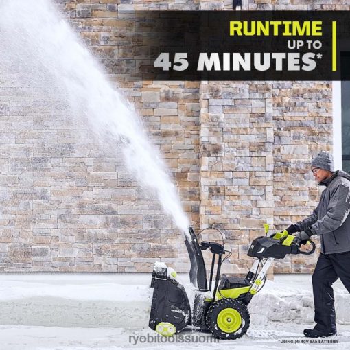 liity ryobi 40v -järjestelmään ryobin 40v hp harjattomalla 24″ lumilinkosarjalla. 40v hv tekniikka tuottaa enemmän tehoa kuin 252cc kaasulumilinko, joka tekee tästä todellisen kaasunkorvikkeen, joka heittää lunta jopa 55 tuumaan. 40 V hv:n tekniikka yhdistää harjattomat moottorit, edistyneen elektroniikan ja korkean suorituskyvyn litiumteknologian, joka tuottaa kaasun tehon ilman vaivaa. Tämä lumilinko saa jopa 45 minuuttia käyttöaika jopa 31 autopaikan tyhjentämiseen käyttämällä (4) aktiivista akkuporttia ja (4) 40v 6ah akkuja. osana whisper-sarjaa se on suunniteltu olemaan 35 % hiljaisempi kuin kaasu- ja jopa muut johdottomat lumilingot, joten voit työskennellä mihin vuorokaudenaikaan tahansa. 24 tuuman raivausleveys ja 21 tuuman raivaussyvyys tekevät siitä ihanteellisen suurille jalkakäytäville ja ajotiteille. Siinä on varnopea itseliikkuva käyttöjärjestelmä, joka viimeistelee työn nopeasti ja vaivattomasti. Parantaa hallintaa ja kestävyyttä säädettävänopeuksinen teräsruuvi selviytyy raskaasta raivauksesta, ja siinä on 180 asteen suunnattu kouru. lataa (2) 40v 6ah akkua samanaikaisesti alle 60 minuutissa. mikä parasta, se on osa ryobin 40v järjestelmää, jossa mikä tahansa 40v akku toimii minkä tahansa 40v tuotteen kanssa. tällä 40v hp harjattomalla 24″ lumilinkosarjalla on ryobin 5 vuoden valmistajan työkalutakuu, 3 vuoden valmistajan akkutakuu, ja se sisältää ry40807 40v hv harjattoman 24″ lumilingon, (4) op40605 40v 40v lithium 4004, 6ah v09 akut kaksiporttinen pikalaturi, kokoonpanolaitteisto ja käyttöoppaat.