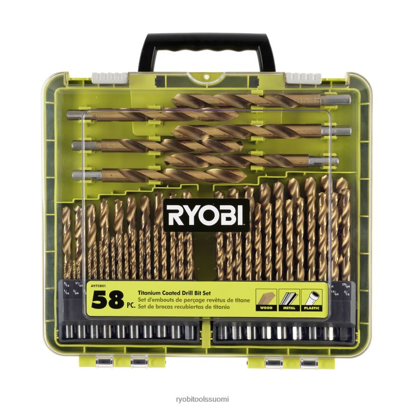 ryobi esittelee 58-osaisen titaanipäällysteisen poranteräsarjan. Tämä titaanipinnoitettu poranteräsarja sopii erinomaisesti monenlaisiin poraussovelluksiin, ja se sopii käytettäväksi puun, metallin ja muovin kanssa. titaanipinnoite lisää terien kestävyyttä. pääset käsiksi teriisi helposti kallistussarjamme ansiosta. tämä sarja sisältää 58 erikokoista titaanilla päällystettyä poranterää.