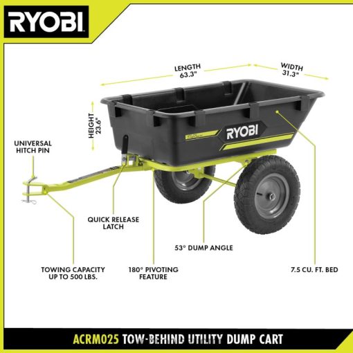 Yleiskytkimellä varustettu ryobi-hinauskärry tarjoaa monipuolista kuljetusta ja hinausta jokapäiväiseen käyttöön. Kiinnitä tämä kaatovaunu ajoleikkuriin, nollakierroksiseen ruohonleikkuriin tai nurmikon traktoriin kuljettaaksesi kuormia helposti kiinteistösi poikki. jopa 500 lbs:n hinauskapasiteetilla ja 7,5 jalkaa^3 sänkyllä, voit helposti vetää multaa, maaperää, kasveja, kiviä, polttopuita, puutarhatyökaluja ja paljon muuta. säästä aikaa 180 astetta kääntyvän toiminnon avulla, jonka avulla voit kätevästi ja tarkasti tyhjentää pysäköidyn ruohonleikkurin vasemmalle, oikealle tai taakse. tämä hyötykäyttöinen kippikärry on suunniteltu kestämään vaativimpiakin töitä kestävän teräsrungon ja 16″:n maasto-ilmarenkaiden ansiosta. Tyhjennä hyötykärry helposti 180 astetta kääntyvän alustan, 53 asteen tyhjennyskulman ja pikalukitussalvan ansiosta. universaali vetotappi sopii useimpiin ajoonniittokoneet, nollakierrosleikkurit ja ruohonleikkurit. mukauta hyötykärryäsi integroiduilla paalujatkopaikoilla, joiden avulla voit rakentaa omia sivupaneeleita ja jakajia. tämä yleiskiinnolla varustettu hinattava kaatovaunu sisältää teräsrungon, säiliön, metalliputken jatkeen, metallikiinnikkeen, akselin, renkaat, asennustarvikkeet ja käyttöoppaan.