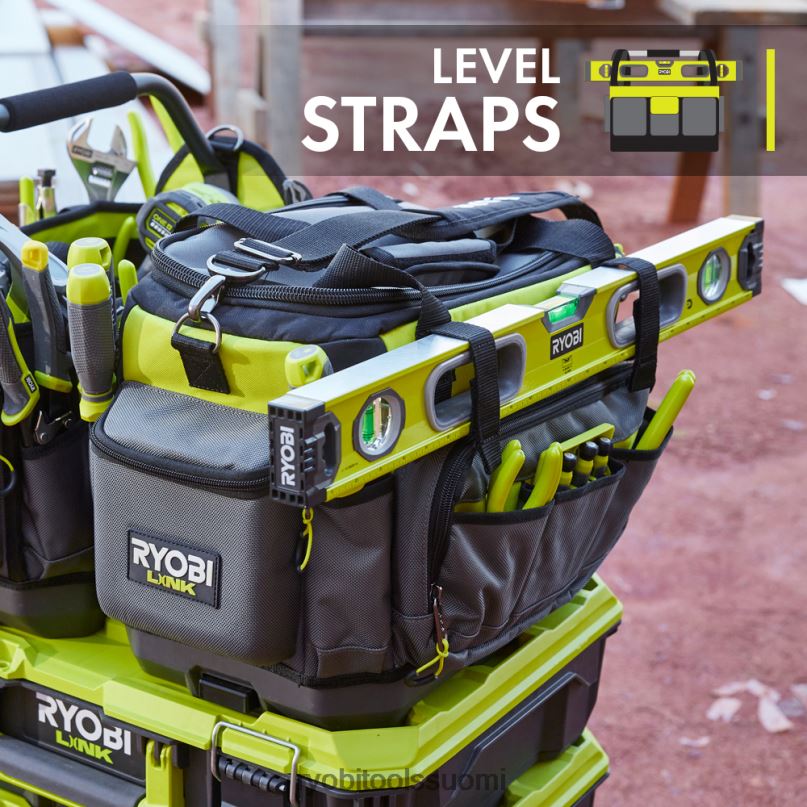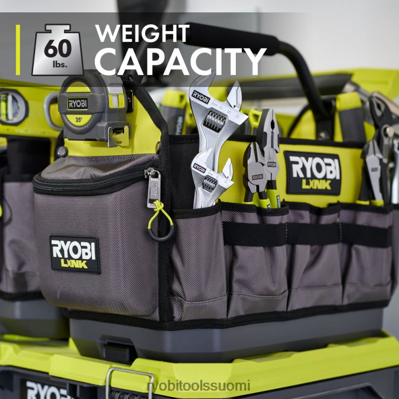 ryobi linkin modulaarinen säilytysjärjestelmä mullistaa varastointialan, ja sen avulla voit järjestää, käyttää ja kuljettaa elämääsi. ryobi link 17″ työkalulaukku on suunniteltu selviytymään vaikeimmistakin tilanteista. 60 lb. painokapasiteetti, raskaat 1680d taskut ja vedenpitävä materiaali pitävät työkalut suojattuna kuljetuksen aikana. Järjestely on loputon 42 sisä- ja ulkotaskulla sekä säädettävällä jakaja. kova sivutasku tarjoaa lisäsuojaa puhelimille tai laseille, kun taas integroidut tasohihnat ja mittanauha pitävät tavarat helposti ulottuvilla. Kanna yläkahvasta tai mukana tulevasta pehmustetusta olkahihnasta. Kääntyvä kahva voidaan helposti säilyttää mikä parasta, se on osa modulaarista ryobi link -varastoaJärjestelmäsarja tuotteita, jotka käyttävät samaa lukitustekniikkaa yhdistämään saumattomasti mobiili- ja kiinteän säilytystarpeesi. omistaa tilasi modulaarisella ryobi link -tallennusjärjestelmällä.