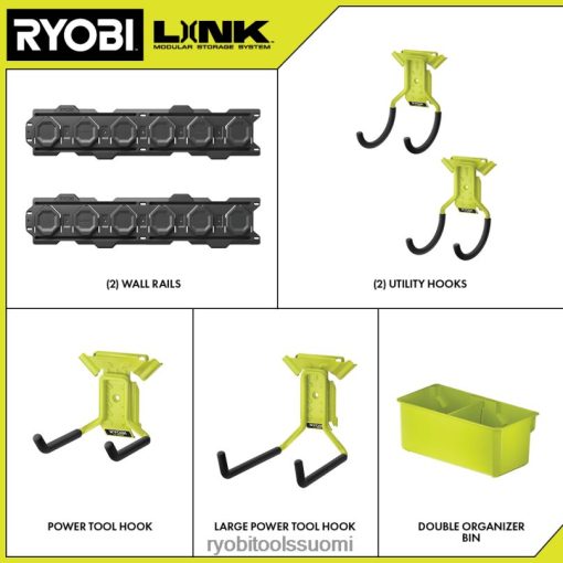 ryobi linkin modulaarinen säilytysjärjestelmä mullistaa varastointialan, ja sen avulla voit järjestää, käyttää ja kuljettaa elämääsi. ryobi linkki 7 kpl. Seinäsäilytyssarjan avulla voit optimoida autotallin säilytystilan mukautettavalla työkalujen säilytysjärjestelyllä. kaksi 33 tuuman seinäkiskot ovat helposti asennettavissa autotallin seinäkiinnikkeissä näkyvillä kiinnityspisteillä ja ne tarjoavat maksimaalisen nastan kiinnittymisen 75 lb:n kantamiseen jalkaa kohti. Tämä sarja sisältää neljä autotallin säilytyskoukkua, jotka antavat sinulle perustan elämäsi organisointiin ja helposti laajentamaan autotallin säilytysjärjestelmiäsi täydellä valikoimalla säilytysratkaisuja. ripustaa käsi- ja sähkötyökalut, ulkoiluvälineet, urheiluvälineet ja kaikki harrastukset siltä väliltä. mikä parasta, se on osa ryobi linkin modulaarista tallennusjärjestelmääm tuotevalikoimaa, jotka käyttävät samaa lukitustekniikkaa yhdistämään saumattomasti mobiili- ja kiinteän säilytystarpeesi. omistaa tilasi modulaarisella ryobi link -tallennusjärjestelmällä.