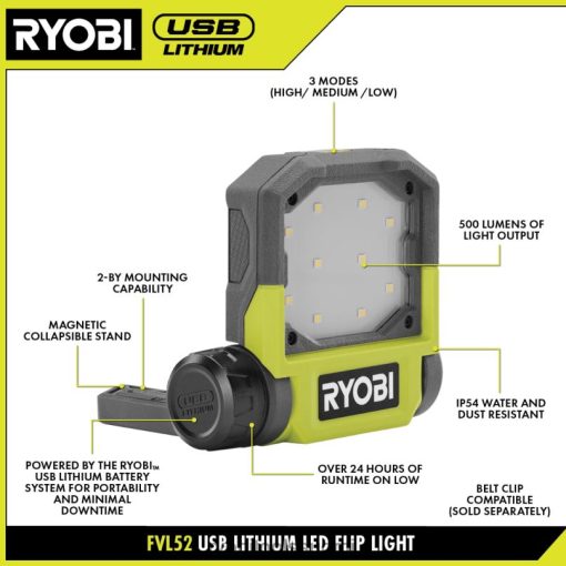 ryobi esittelee usb-litium-LED-flip-valosarjan. Tämä valo tarjoaa 500 lumenia ja siinä on 3 valotilaa, jotka tarjoavat ihanteellisen määrän valoa joka kerta. asenna ja suuntaa valosi juuri sinne, missä sitä tarvitset sen kääntyvän jalustan, magneettisen alustan ja 2-by-asennusmahdollisuuden avulla. tämä valo tarjoaa yli 24 tunnin selkeän peiton. ip54-luokituksen veden- ja pölynkestävyyden ansiosta tämä valaisin on rakennettu kestämään vaikeimmatkin olosuhteet. usb-litium-led-flip-valosarja on osa usb-litiumjärjestelmää, joka tarjoaa kompakteja, kannettavia, ladattavia ratkaisuja johdottomaan tehoon ja tuottavuuteen. tällä usb-litium-LED-flip-valaisinsarjalla on ryobin 2 vuoden valmistajan takuu, ja se sisältää (1) fvl52 led-flip-valon, (1) fvb01 usb-litium-2ah-akun, usb-kaapelin ja käyttöoppaat.