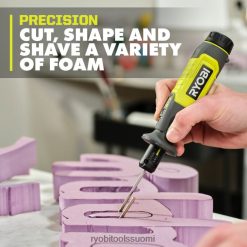 ryobi esittelee usb-litiumvaahtomuovileikkurisarjan. Tämä vaahtomeikkuri leikkaa, muotoilee ja ajelee erilaisia vaahtoja. kuumenee nopeasti alle 2 minuutissa, tämä työkalu on valmis, kun olet. kaksi lämpöasetusta antavat sinulle tarkan lämpötilan säädön projektin tarpeiden mukaan. Tämä sarja sisältää 3 erilaista vaahtomuovileikkauskärkeä erilaisiin sovelluksiin. kuumalangan kärki on ihanteellinen vaahtomuovin kaivertamiseen, viipalointiin ja muotoiluun. Eräitä hyviä paikkoja tämän vinkin käyttämiseen ovat verhoiluvaahtomuovi, kun kierrätät huonekaluja tai muotoilet styroksi itse tekemällä. tarkkuuskaiverruskärki lisää kuvioihisi tekstuuria tai yksityiskohtia. reikäkärki sopii erinomaisesti eri muotojen leikkaamiseen tai reikien kaivamiseen styroksi. poista seisokit kätevällä työkaluttomalla kärjen vaihdolla. Tämä vaahtomuovileikkuri on yhteensopiva ryobi 2 kpl:n kanssa.vaahtoleikkurin kärkisarja (a81fc07) ja korvaava nikromilanka (a81fc06) (myydään erikseen). Yhdistä usb-litiumvaahtoleikkuri ryobin hobby-asemaan (rhs01) saadaksesi parhaan hallinnan ja tarkkuuden (myydään erikseen). Tässä tuotteessa on LED-merkkivalo, joka ilmoittaa, kun työkalu lämpenee, sekä ilmaisee akun lataustilan. mikä parasta, se on osa ryobi usb litium -työkalujärjestelmää, joka tarjoaa kompakteja, kannettavia ja ladattavia ratkaisuja johdottomaan tehoon ja tuottavuuteen. usb-litiumvaahtomuovileikkurisarjalla on ryobin 2 vuoden valmistajan takuu, ja se sisältää usb-litium 2ah -akun, nikromilangan, kuumalangan kärjen, tarkkuuskaiverruskärjen, rei’ityskärjen, jalustan, usb-kaapelin ja käyttöoppaat, ja se on pakattu pakkaukseen. kova kotelo järjestämisen ja mukavuuden vuoksi.